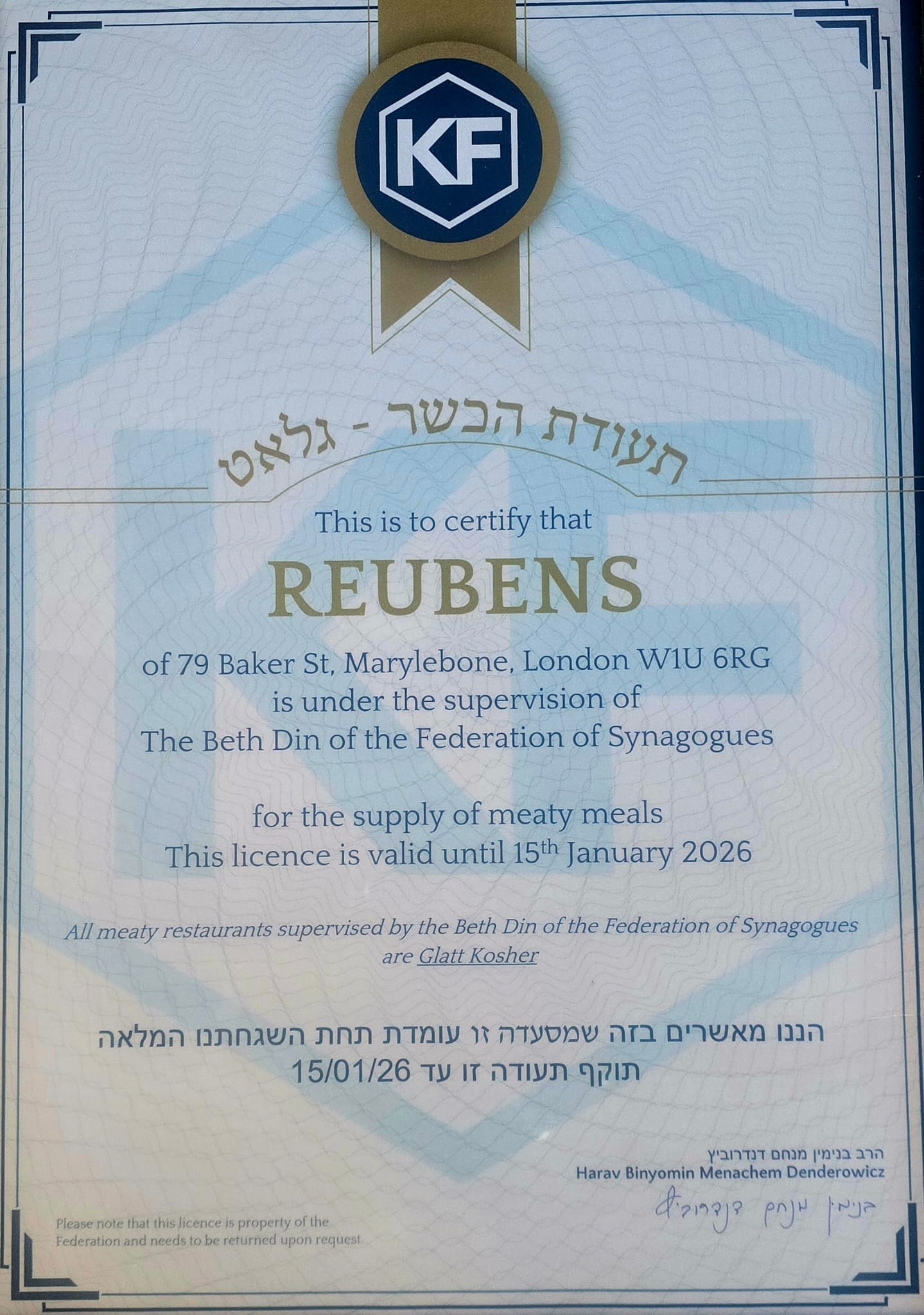 Reubens has been serving up an array of delicious food for over 49 years as the longest-running kosher restaurant in the UK and the only kosher restaurant in the West End. Our newly updated offering retains the heart of the brand and continues to serve up all the classic and favorite recipes that our customers have always loved – including piled-high salt beef sandwiches, the Reubens burger, latkes, schnitzel and chicken soup with all the trimmings.